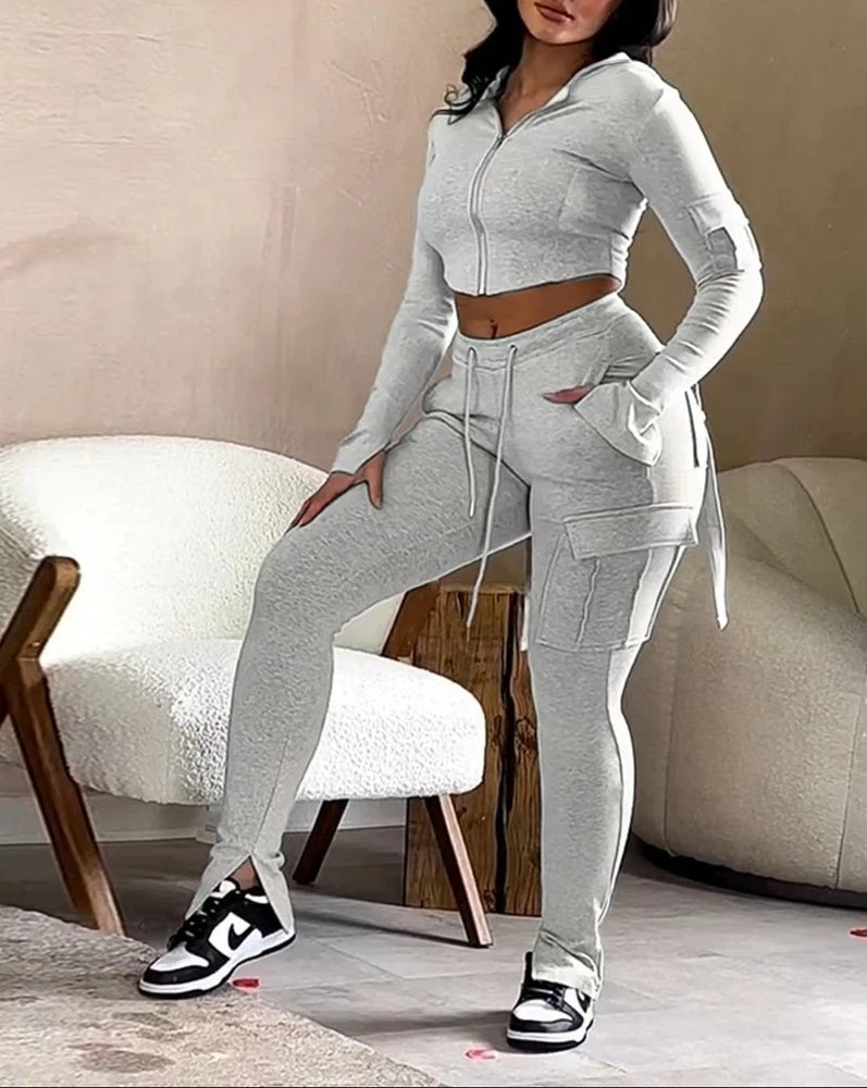 Functional Design: With a split hem and functional pockets, these trousers seamlessly combine fashion with functionality, allowing you to carry essentials while looking chic.